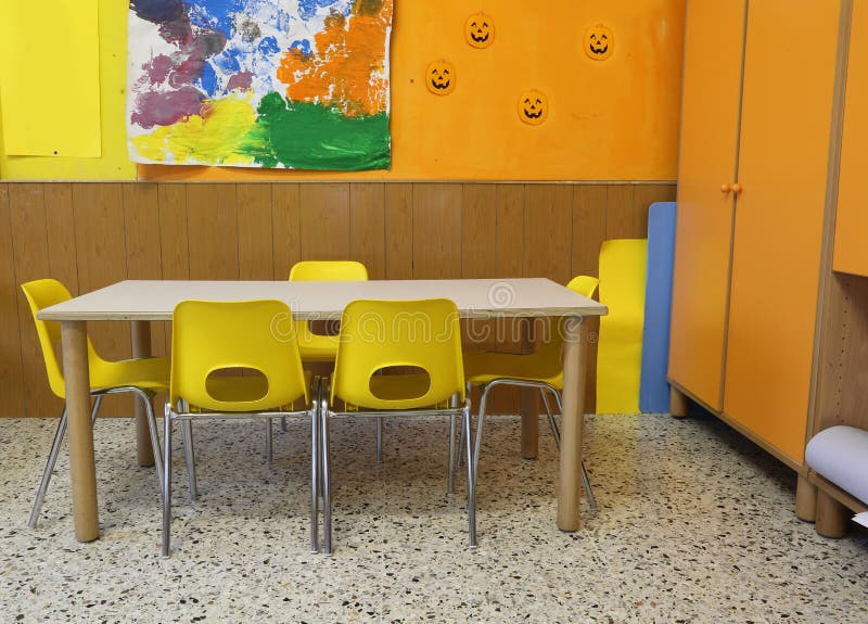 Classroom of a School with Yellow Chairs Stock Image Image of nursery