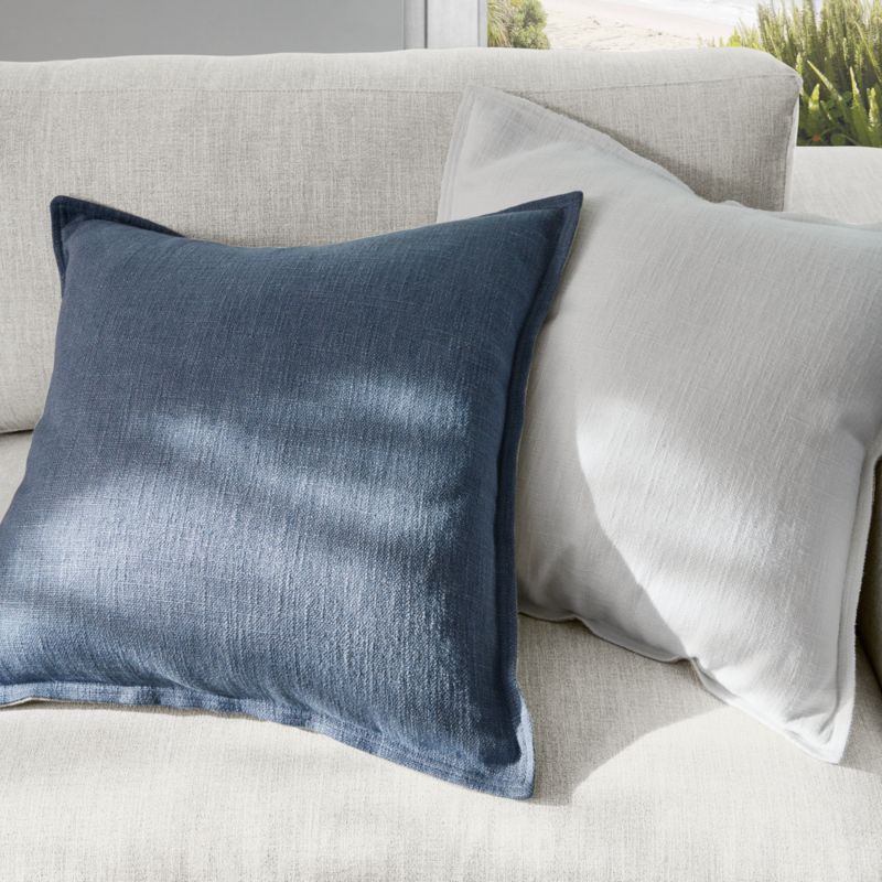 Blue 20"x20" Organic Laundered Linen Throw Pillow with Feather Insert
