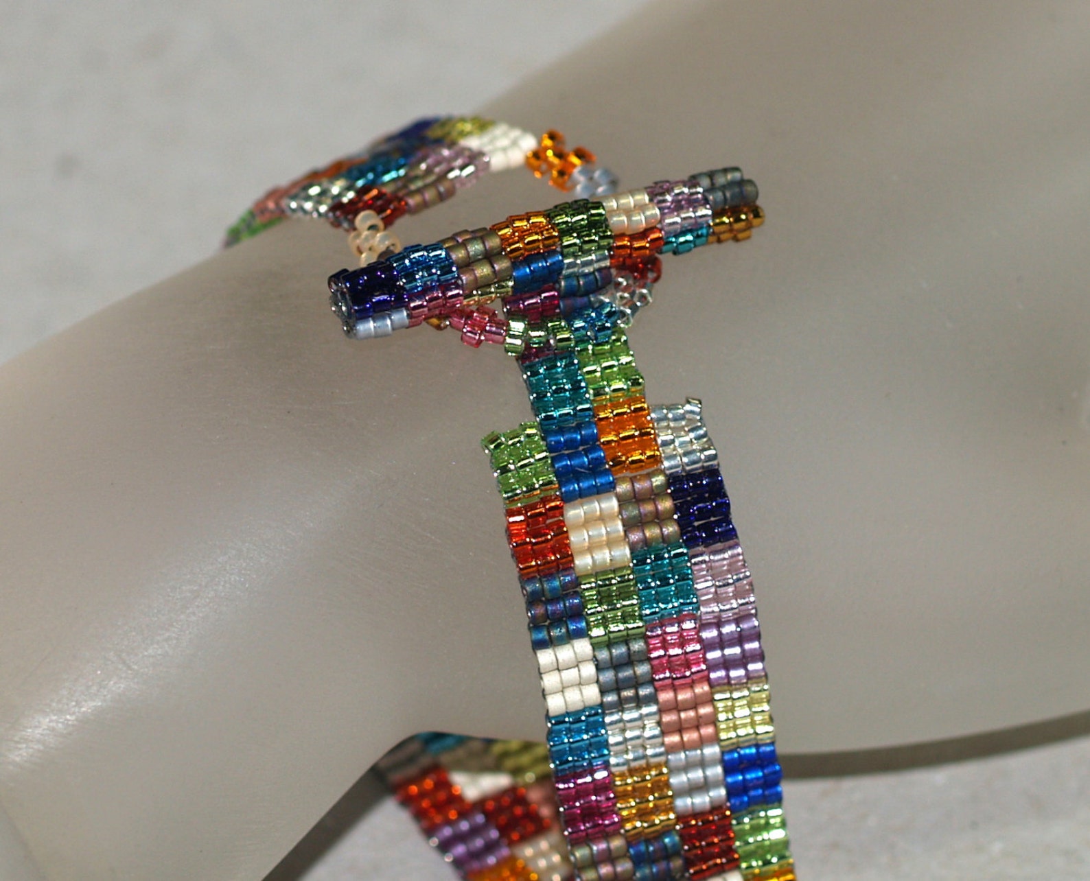 Grandma's Wild Patchwork / Beadwoven Bracelet / Narrow / Jewelry