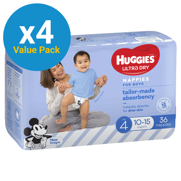 Buy Huggies Ultra Dry Toddler Boy Nappies Value Box Size 4 (144) at