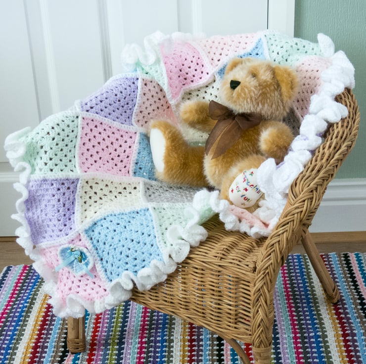 Crocheted Baby Blanket with Ruffle Edge Crochet Ruffle Edge For Baby Blanket The ruffle edged crochet baby blanket is not your ordinary crochet pattern. This free pattern includes seven different sizing directions (swaddle blanket, crib blanket, newborn baby blanket, receiving blanket, baby blanket, lapghan and child blanket). Adding a crochet ruffle edge can take your project from simple to stunning. Want to add a crochet ruffle edge to your afghan easy peasy?. Crochet Ruffle Edge For Baby Blanket.