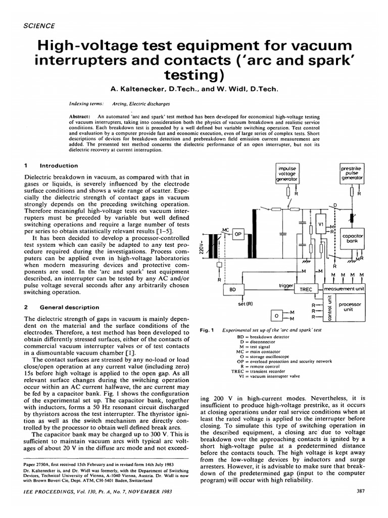 HighVoltage Test Equipment For Vacuum Interrupters and Contacts ('Arc Vacuum Electrical Breakdown The surface phenomena of breakdown in a vacuum have been studied: This chapter brings out the essential features of prebreakdown and electrical breakdown in solids, liquids, and vacuum. suppressing an electrical breakdown of vacuum gap is one of principal factors to achieve higher performance and reliability of advanced facilities, such as particle accelerators, space crafts, vacuum. It discusses the. Vacuum Electrical Breakdown.