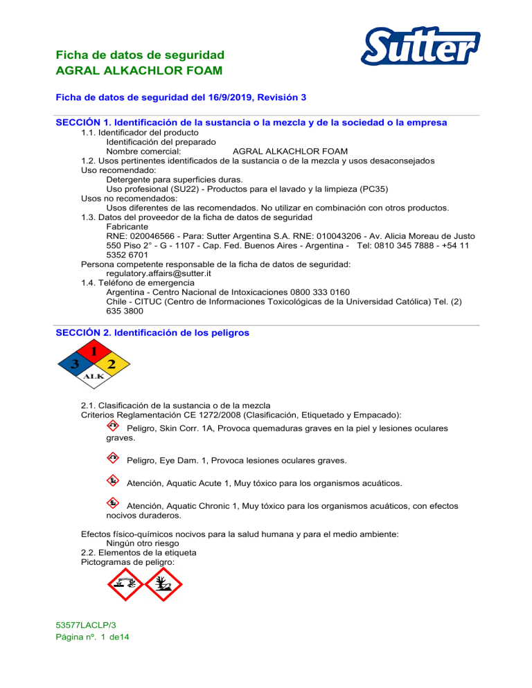 AGRAL ALKACHLOR FOAM HOJA SEGURIDAD Foam Cleaner Hoja De Seguridad Identificación de la sustancia o la. Métodos de limpieza usar ropa de protección como se describe en la sección 8 de esta ficha de datos de seguridad. Ficha de datos de seguridad. Mayo del 2018 página 1/8 foam cleaner adesa sección i. Hoja de seguridad elaborada acorde a: Hds fc hoja de datos de seguridad fecha de actualización: Solución concentrada. Foam Cleaner Hoja De Seguridad.