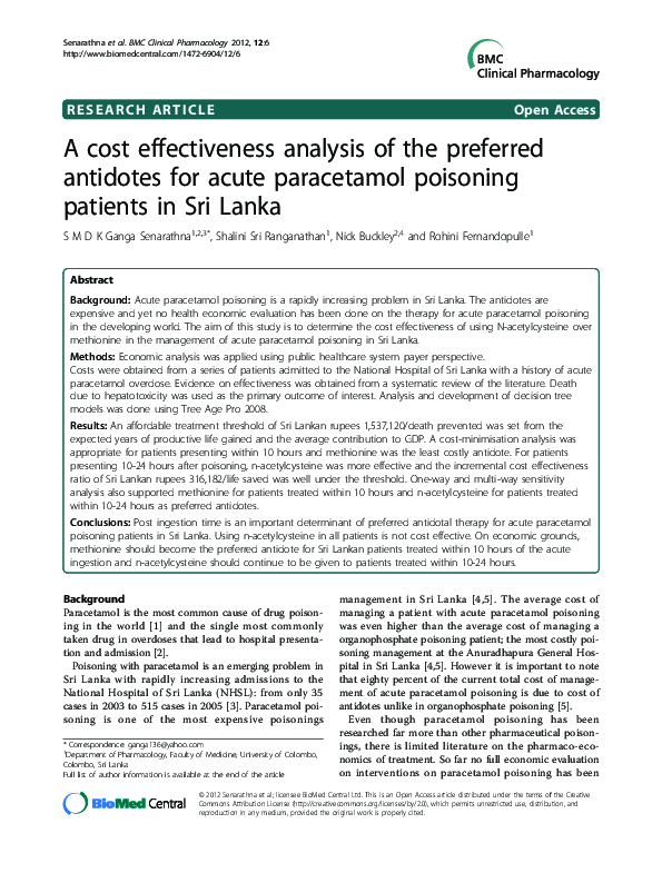 (PDF) A cost effectiveness analysis of the preferred antidotes for