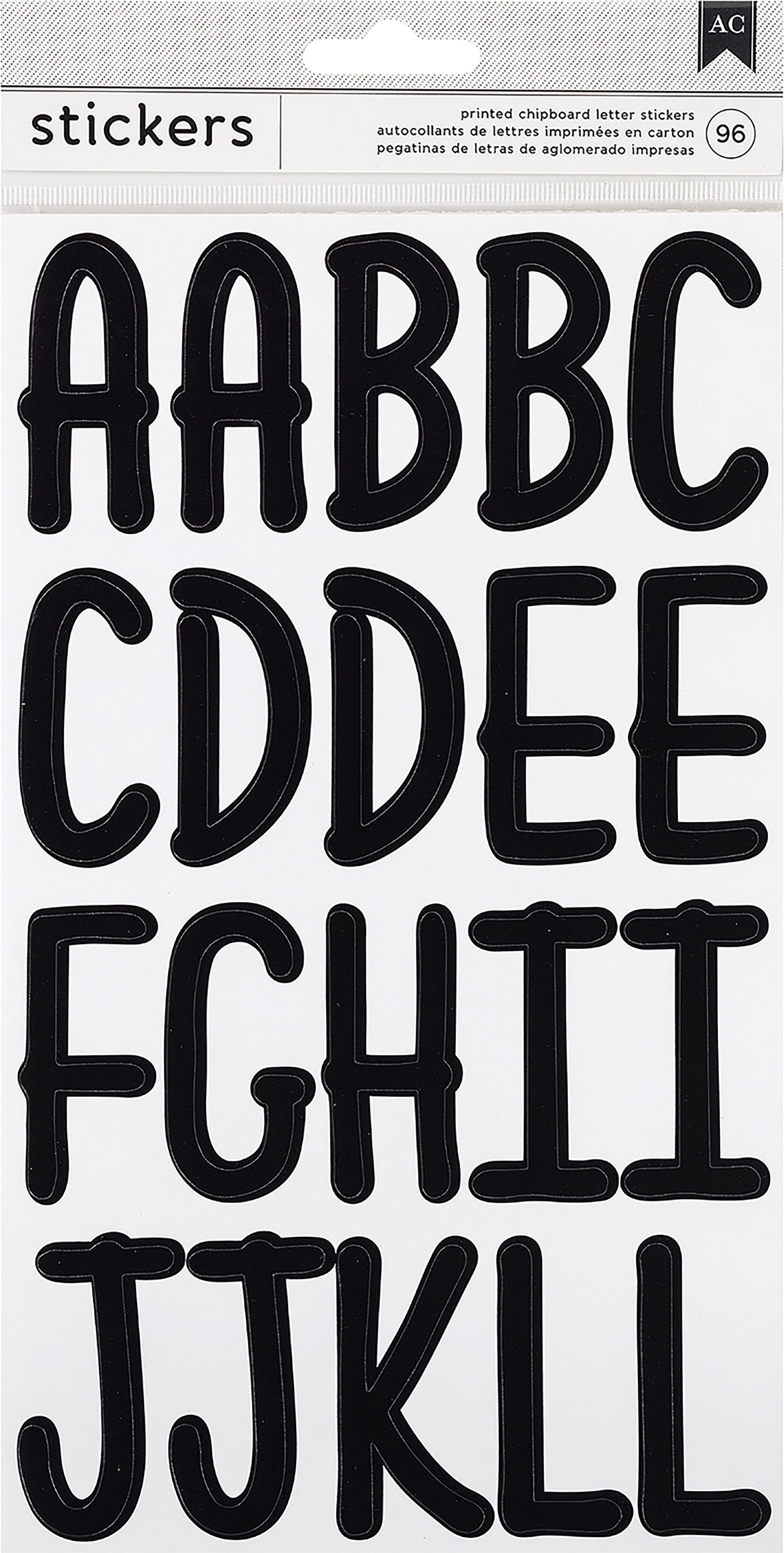 American Crafts Chipboard Alphabet Stickers 96/PkgBlack/Xl Script
