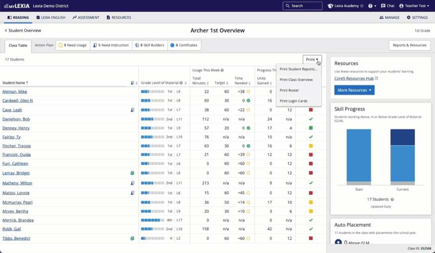 How do I print reports for my Core5 students?