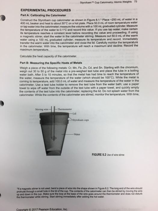 Solved 73 Styrofoam Cup Calorimetry Atomic Weights EXPER...