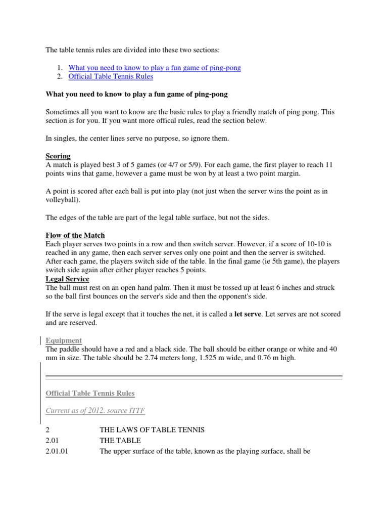 A Summary of Basic Ping Pong Rules and Official Table Tennis Rules PDF Table Tennis Ball Games