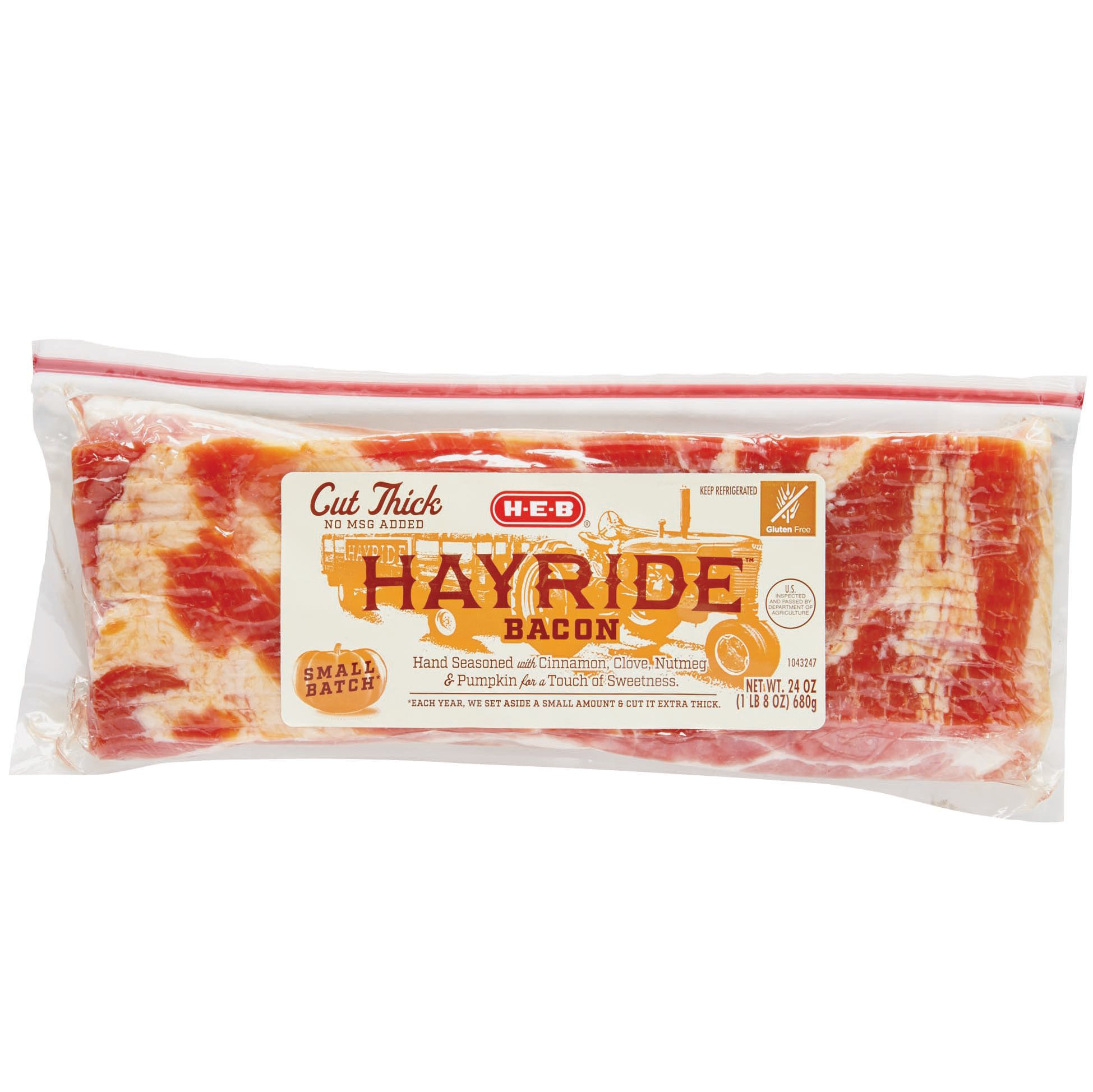 HEB Premium Hayride Bacon Shop Bacon at HEB Heb Bacon Nutrition Facts Naturally hickory and mesquite smoked with no msg added. Plus, you'll enjoy every crispy crunch. 74% fat, 0% carbs, 26% protein. Full of rich, savory flavor, it's naturally double smoked with. there are 60 calories in 1 fried slice (11 g) of heb original thick cut bacon. 1 slice of h‑e‑b original thick cut bacon contains 70 calories.. Heb Bacon Nutrition Facts.