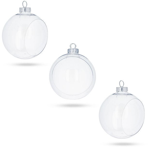 BestPysanky Set of 3 Clear Plastic Christmas Ball Ornaments with Cutout Openings DIY Craft 5