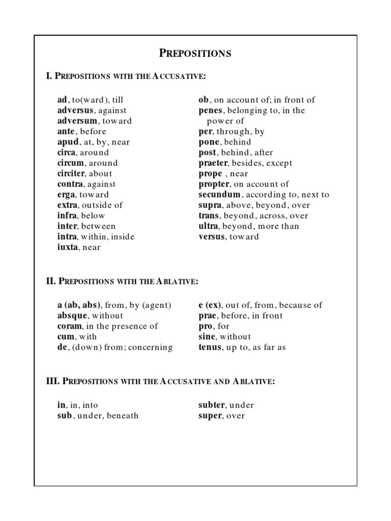 A Comprehensive Breakdown of Latin Prepositions and Their Uses with the