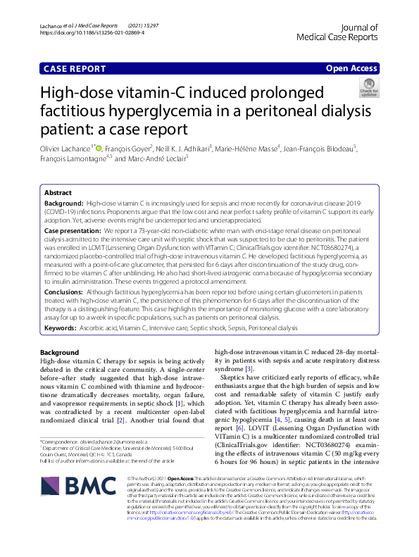 (PDF) Highdose vitaminC induced prolonged factitious hyperglycemia in