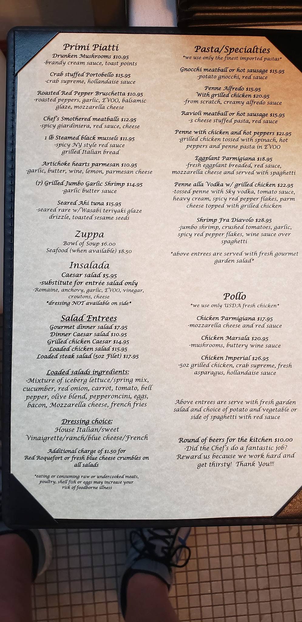 Menu at Finelli's Italian Villa restaurant, Altoona