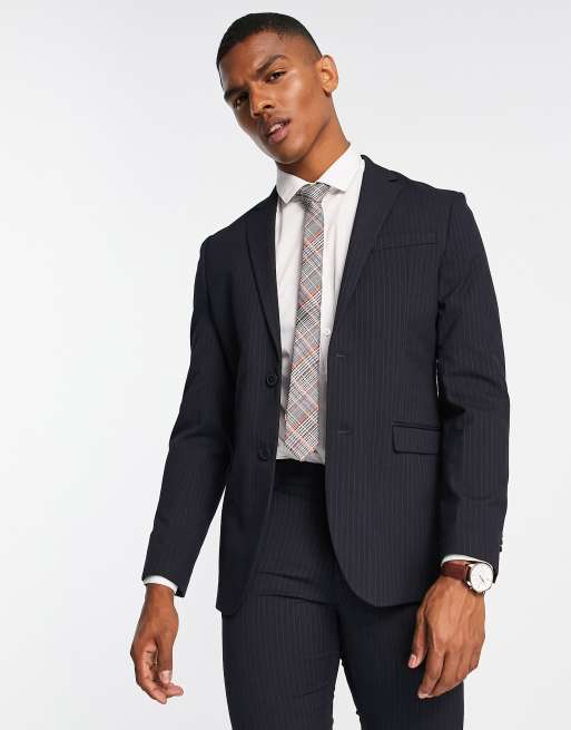 New Look skinny pinstripe suit jacket in navy ASOS