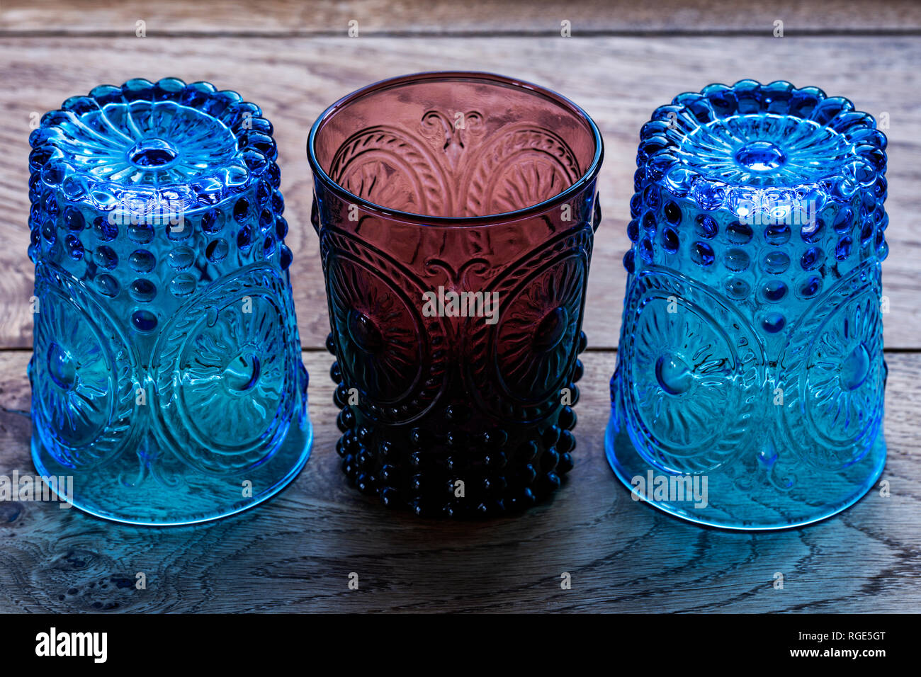 Coloured, patterned glass tumblers Stock Photo Alamy