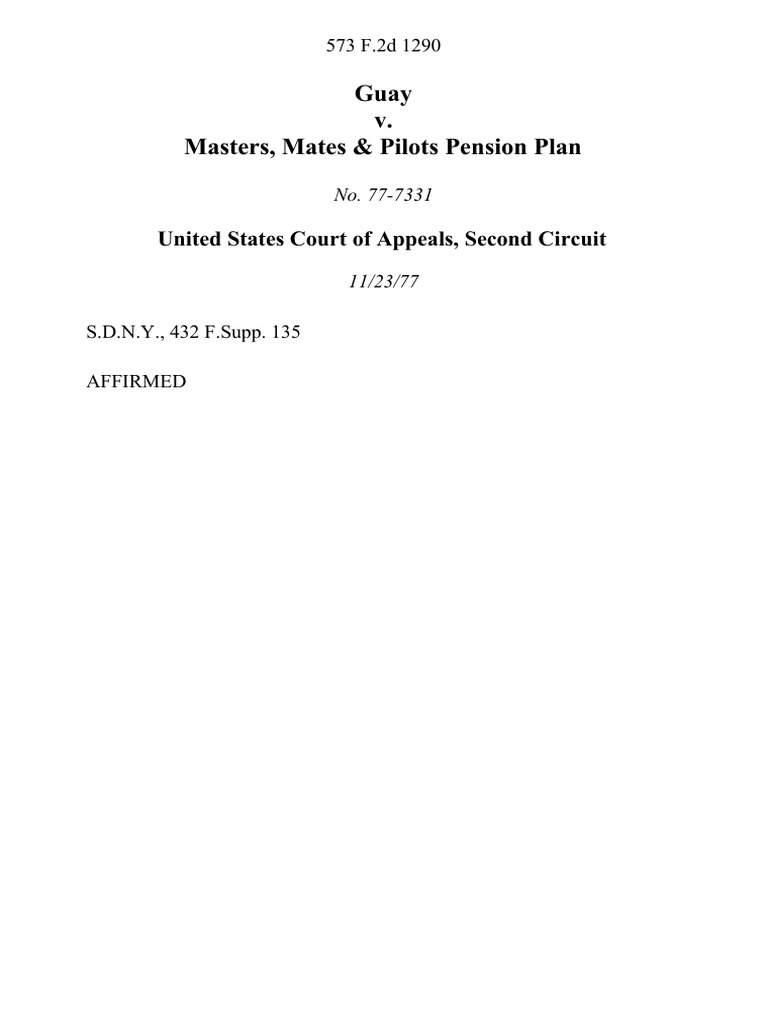 Guay v. Masters, Mates & Pilots Pension Plan, 573 F.2d 1290, 2d Cir. (1977) PDF