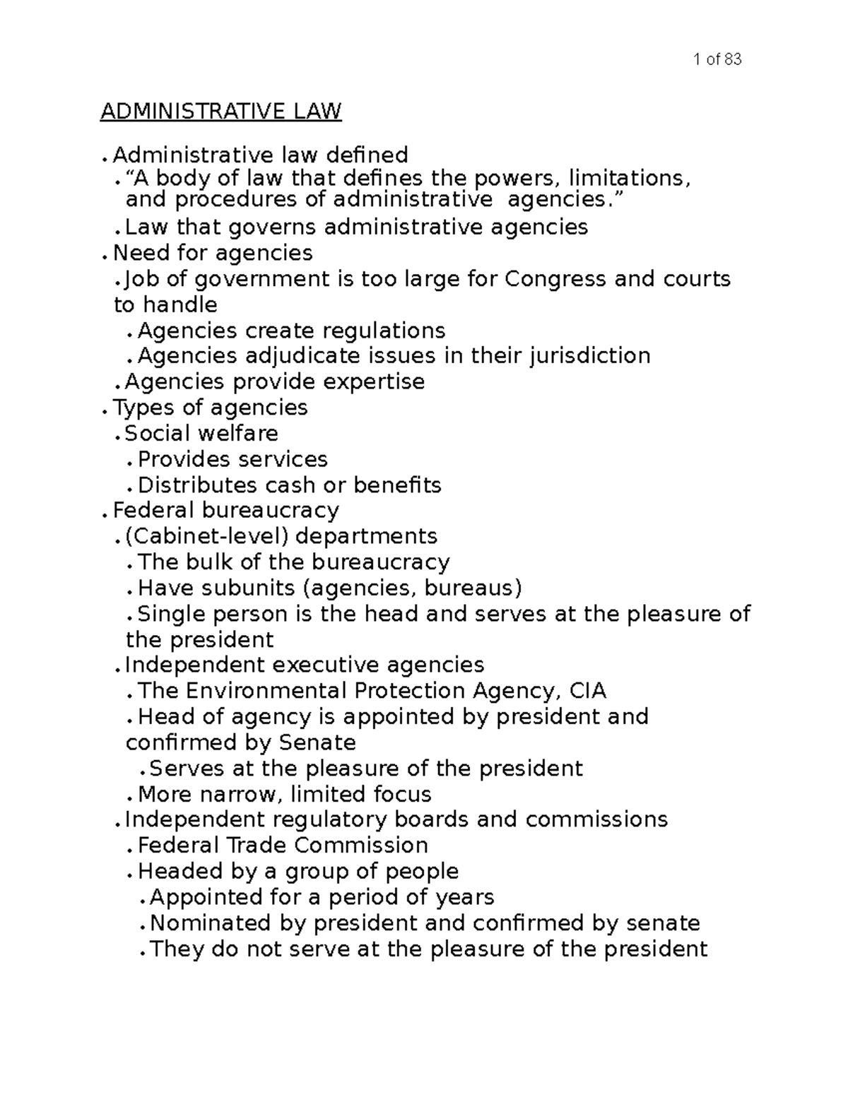 Law Notes POL 1 of 83 ADMINISTRATIVE LAW Administrative law defined
