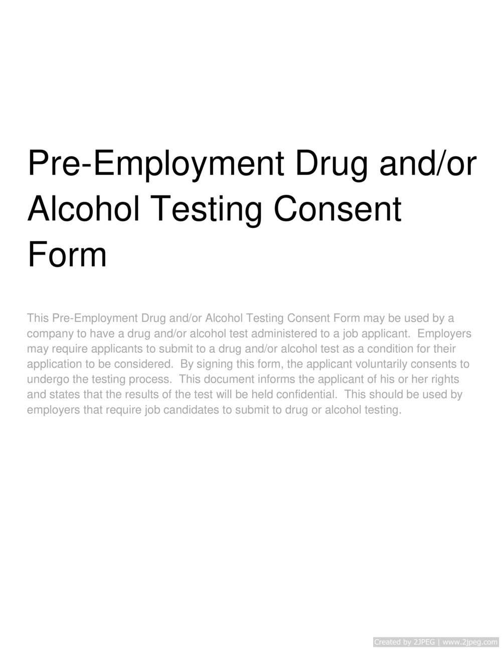 Free Drug / Alcohol Testing Consent Form PDF Word eForms Alcohol Test For A Job Employers can prohibit the use of drugs and alcohol, test for drug use, and fire employees who are engaging in illegal drug use. Breath alcohol testing is typically performed using an ebt, or evidential breath test device, which is a portable device that can be easily administered on the job site. The presence of alcohol testing in employment drug tests. Alcohol Test For A Job.