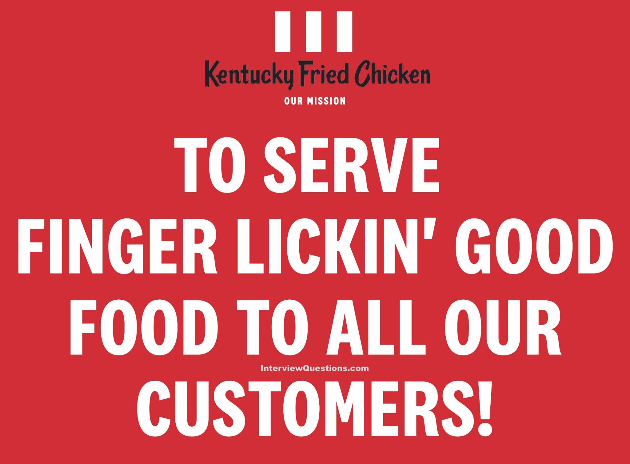 29 KFC Interview Questions (With Answers To Get You Hired) What Is The Vision And Mission Statement Of Kfc Kfc mission statement is to have a passion for finger lickin’ good food and serve it with pride. From donating food, to protecting our planet, to upskilling and creating opportunities for underprivileged communities, we're committed to making a difference, however we can. Get an exclusive insight into kfc's strategic planning through our detailed analysis of its mission and vision statements. What Is The Vision And Mission Statement Of Kfc.
