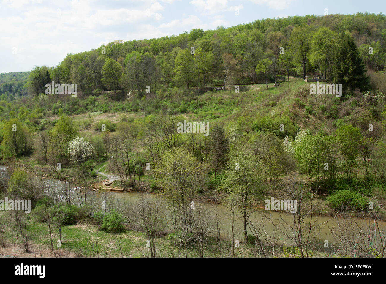 Conemaugh river running through the remnants of the South Fork Dam used