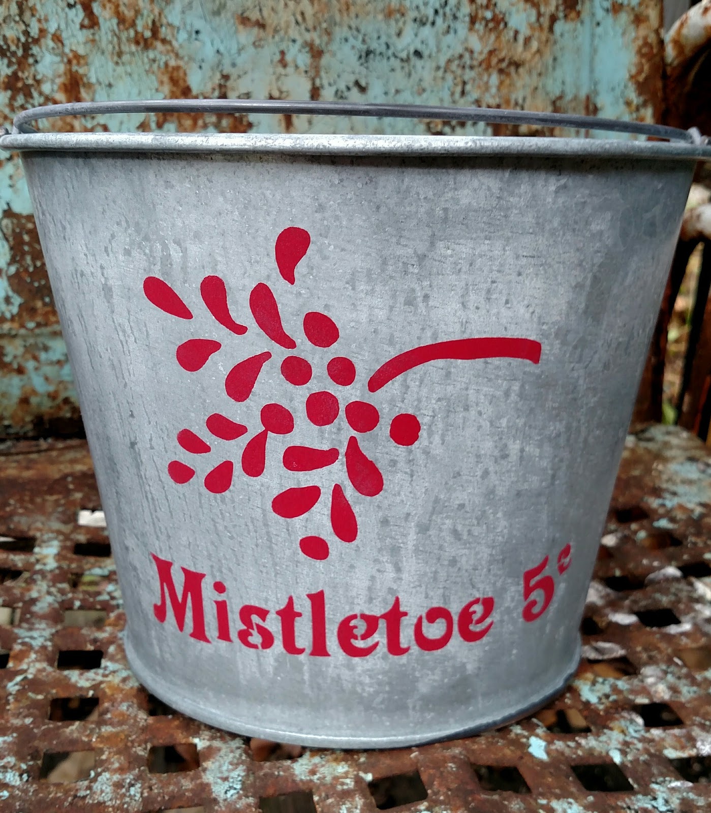 Red Tin Inn Aging and stenciling metal buckets for holiday decor