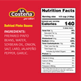 Pinto beans refried La Costena 580g*6 Mexico La Costena Refried Beans Nutrition There are 140 calories in 1/2 cup (130 g) of la costena refried pinto beans. The macronutrient breakdown is 37% carbs, 48% fat, and 15% protein. 43% fat, 44% carbs, 13% prot. 44% fat, 42% carbs, 14% protein. There are 120 calories in 1/2 cup (125 ml) of la costena refried pinto beans. Calories and other nutrition information for pinto. La Costena Refried Beans Nutrition.