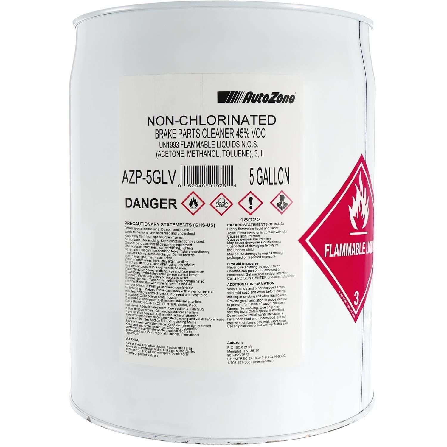 AutoZone AZP5GULV NonChlorinated VOC Brake Parts Cleaner 5gal Non Chlorinated Brake Cleaner Autozone On the flip side, chlorinated brake cleaners are harsher and more hazardous but more efficient at dissolving dirt and grime. These compounds are highly effective solvents for cleaning brake parts. Formulated to quickly remove brake fluid, grease, oil, and other contaminants from brake linings and components. They’ve strong degreasing properties and can easily remove brake dust, oil, and other contaminants.. Non Chlorinated Brake Cleaner Autozone.
