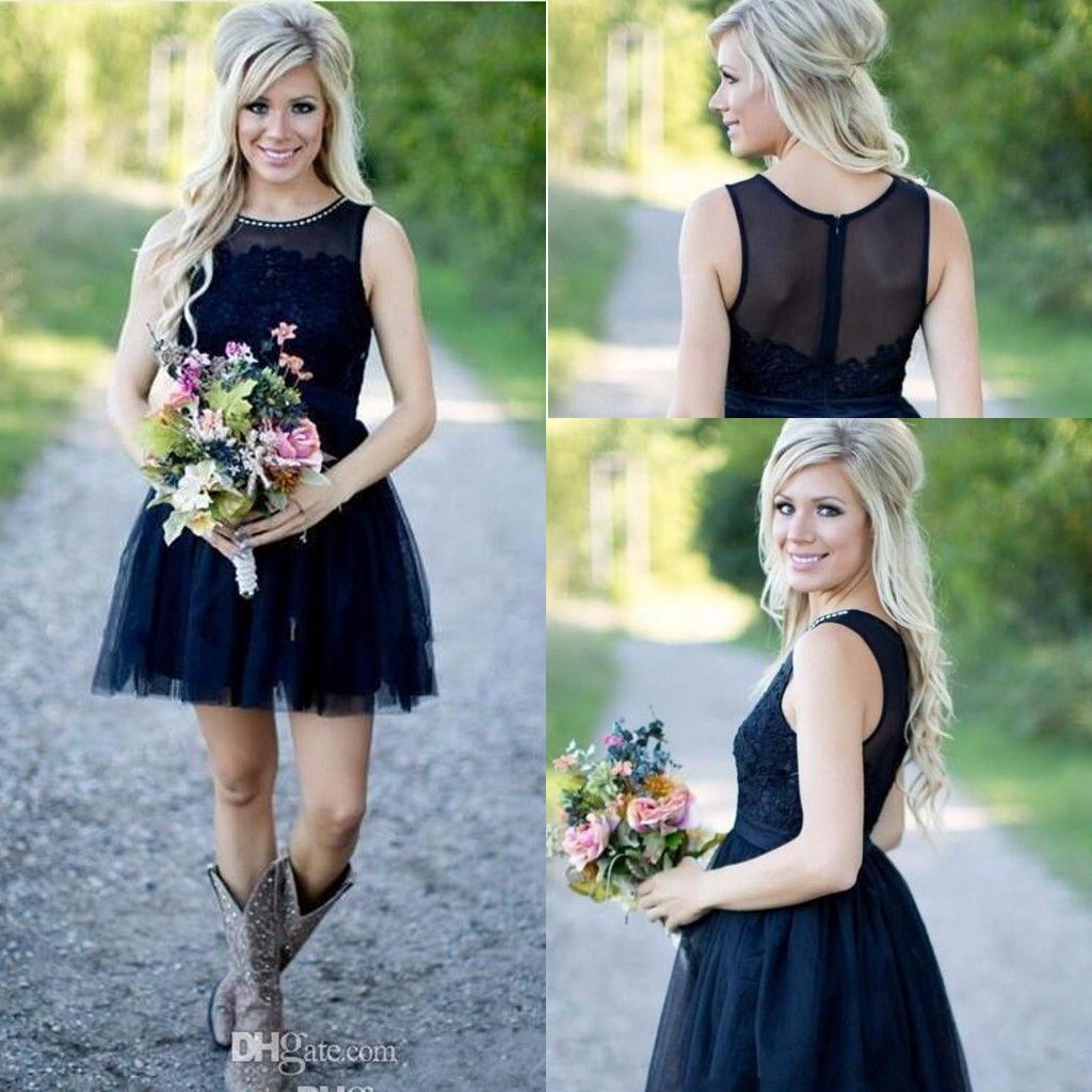 2017 New Sexy Country Short Bridesmaid Dresses Navy Blue Jewel Neck