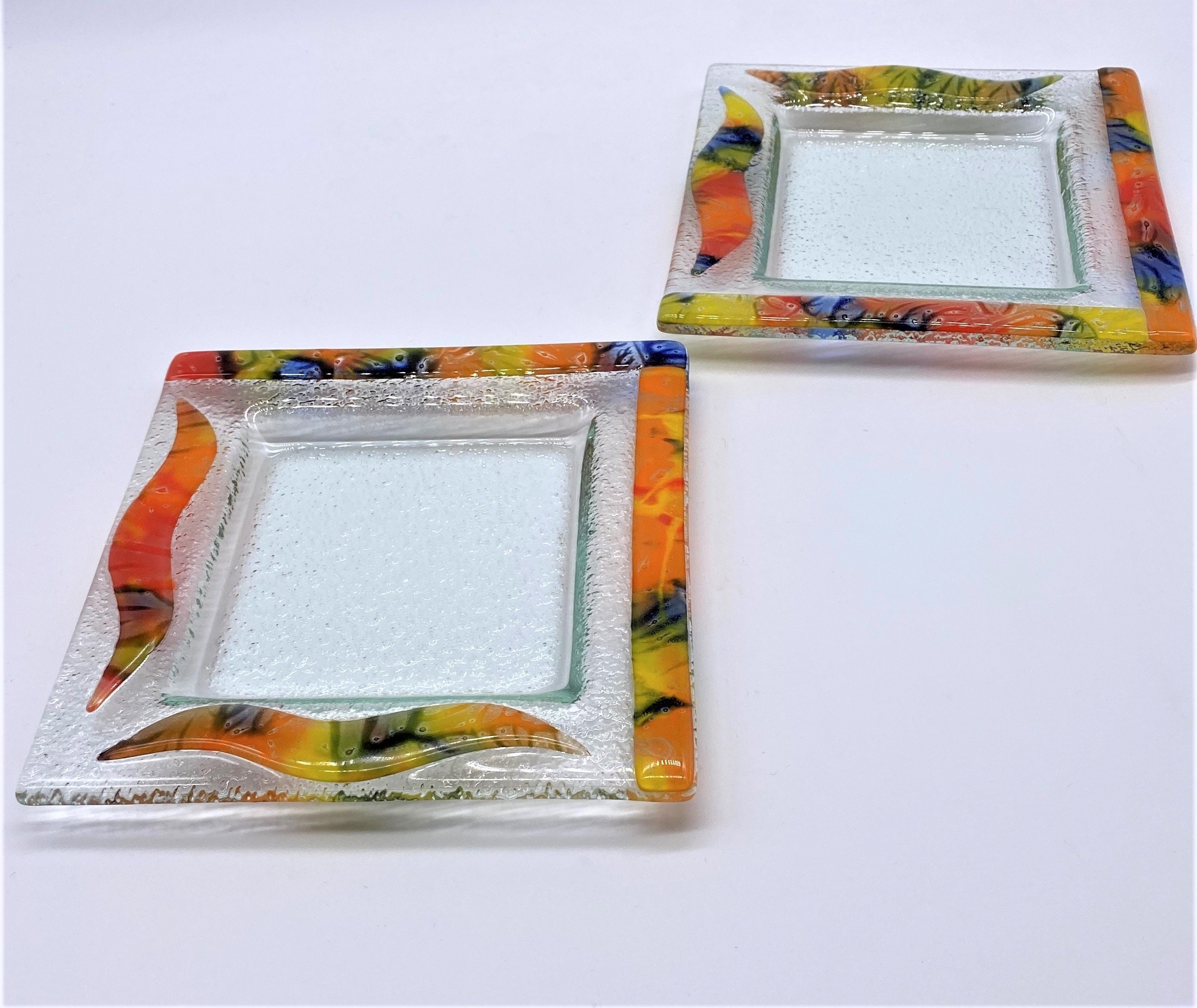 Square Glass Plates. Coloured Glass Plates. Recycled Glass Etsy