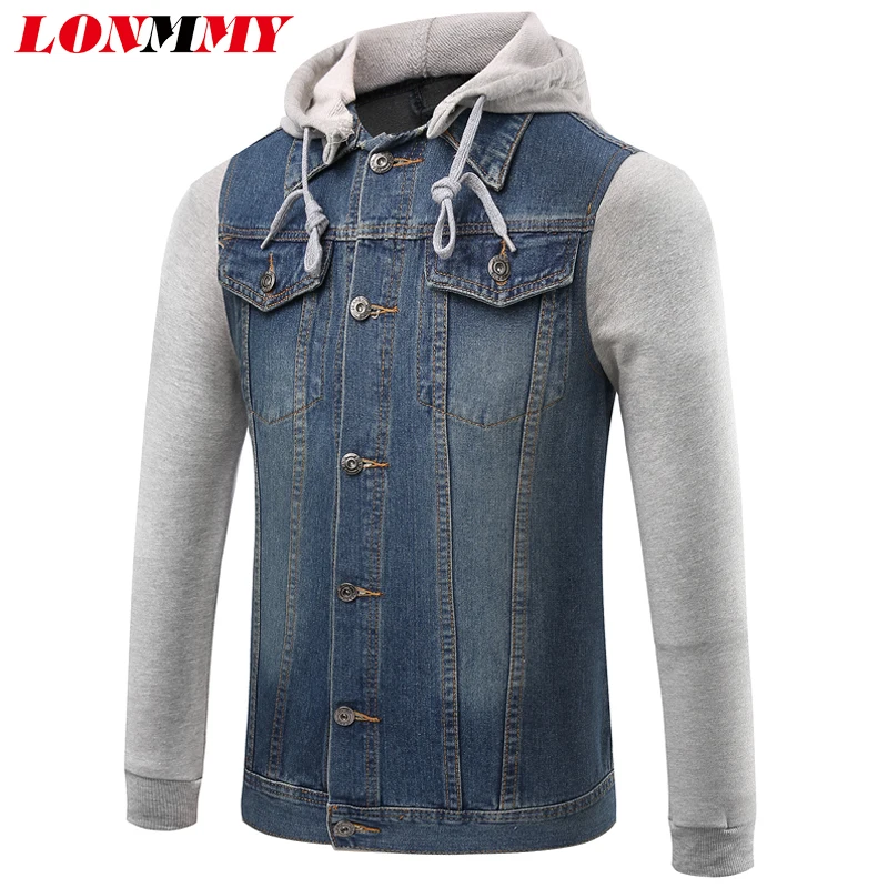 LONMMY M 5XL Denim jacket mens clothing Slim fit Fashion cowboy Hooded