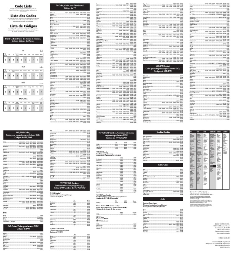RCA Control Remoto Remote Codes Codigos.pdf Videocassette Recorder