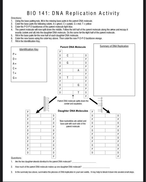 Solved BIO 141 DNA Replication Activity Directions 1.