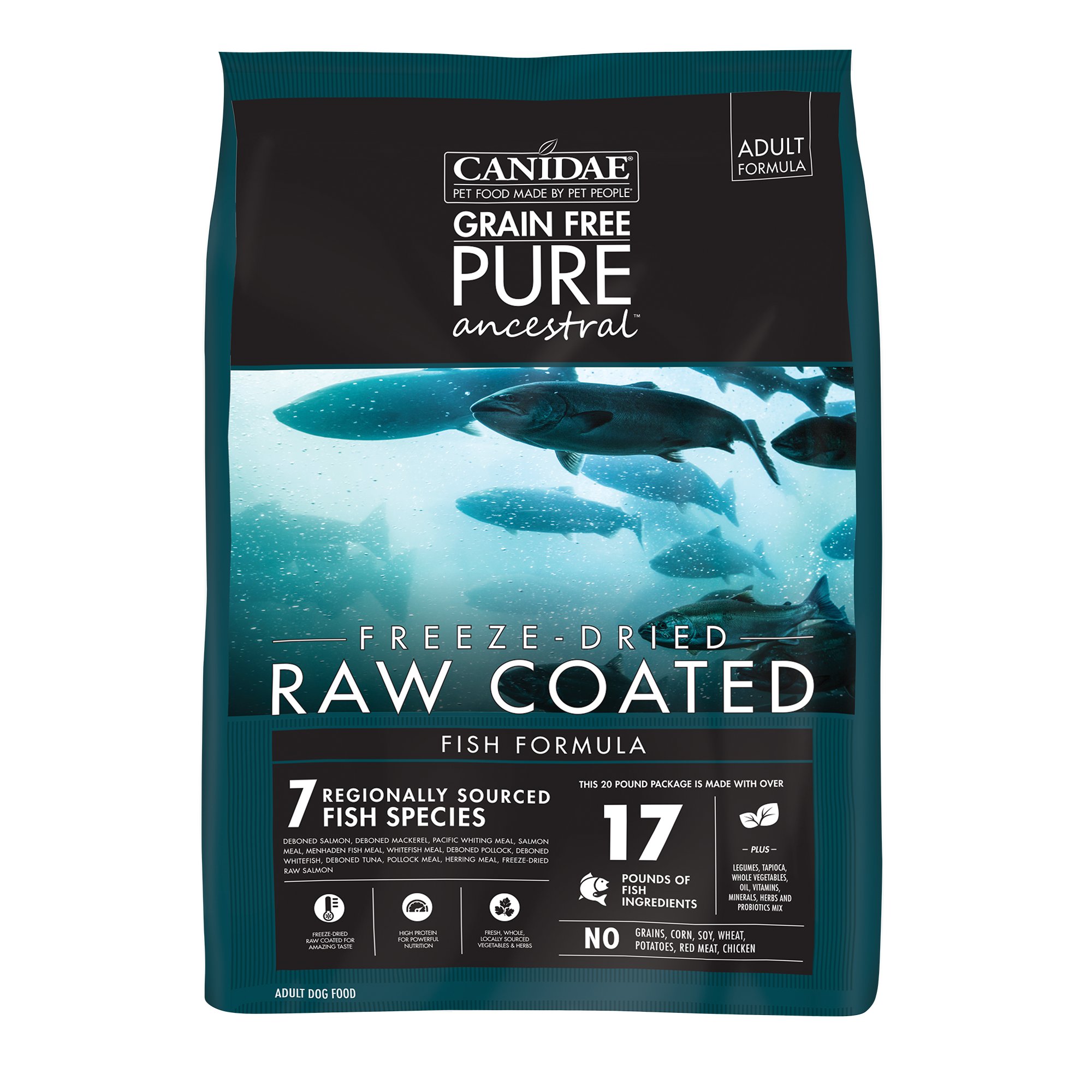 4. CANIDAE Grain Free PURE Ancestral Raw Coated Fish Formula Dry Dog Food