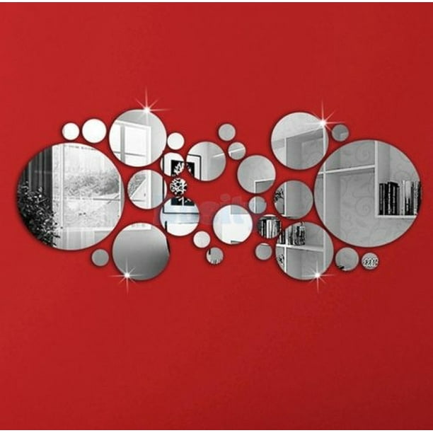30Pcs/set 3D Modern Mirror Wall Stickers Silver Acrylic DIY Mural Decal