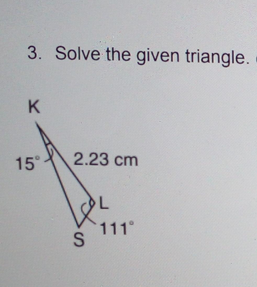 Solved 3. Solve the given triangle. K 15 2.23 cm OL 111° S
