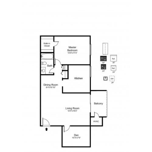 One Bedroom Den 1 Bed Apartment Chesapeake Village Apartments