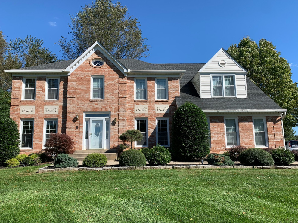 Red brick with gray cedar shake gable Brick exterior house, Red brick Siding Colors With Pink Brick Pink bricks have a soft, muted hue. For pink brick exterior color schemes, be inspired by these color palettes that blend beautifully with the subtle radiance of your bricks. Visually, pink bricks appear to be light red in color, lighter than standard red brick, which can. You can use siding to achieve striking contrasts, or. What to paint the siding. Siding Colors With Pink Brick.