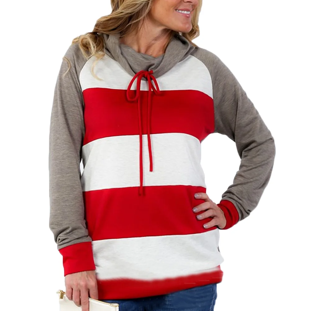 Women 's Girls Winter Warm Long Sleeves Casual Cotton Blend Striped Tie