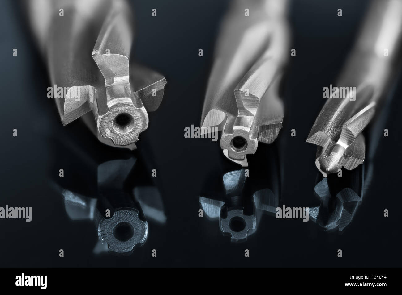 Mill cutters. Drill bit. Artistic detail. Blue mirroring in glass