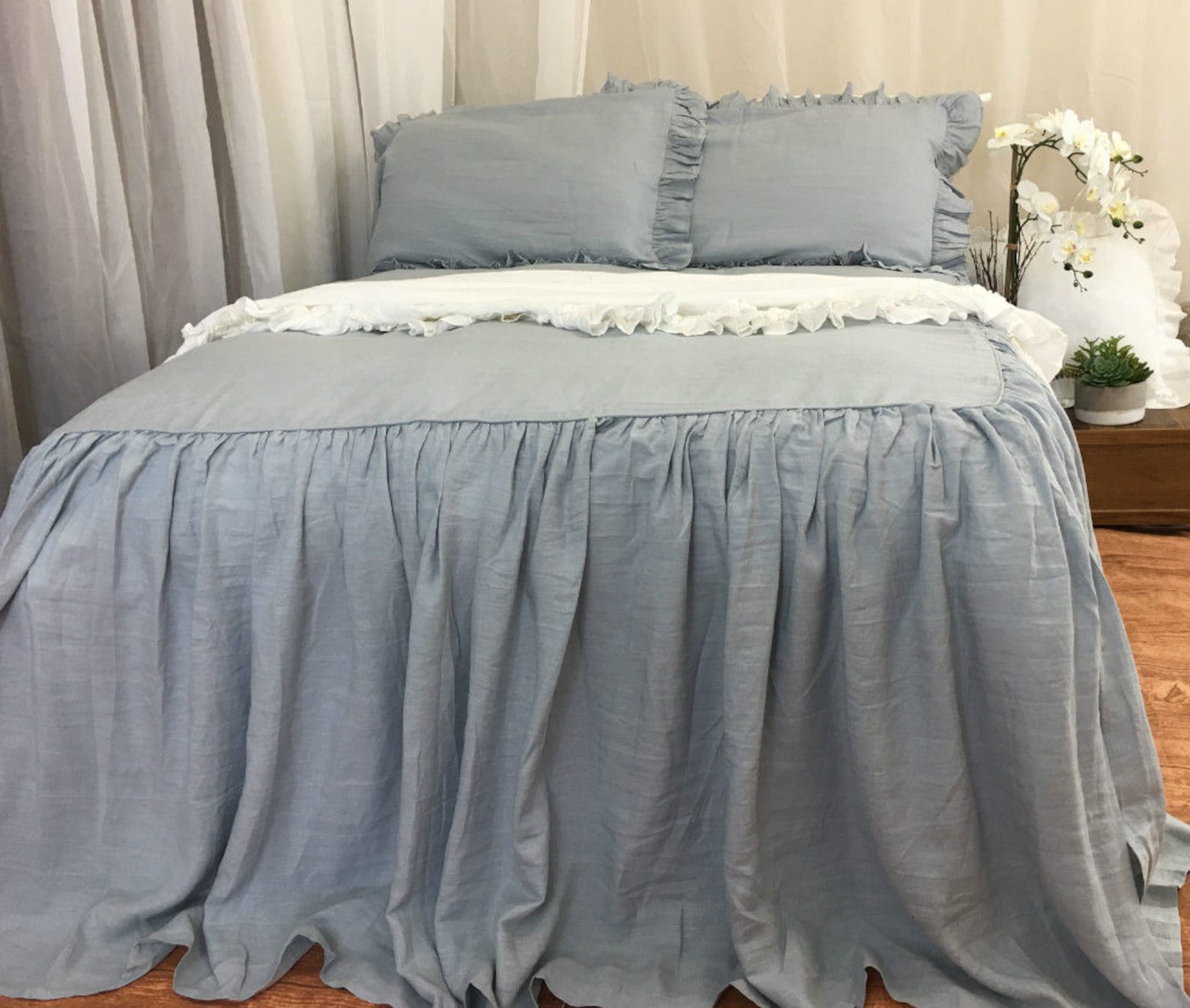Duck Egg Blue Bedspread Blue Ruffle Bedding Linen Bedding Etsy