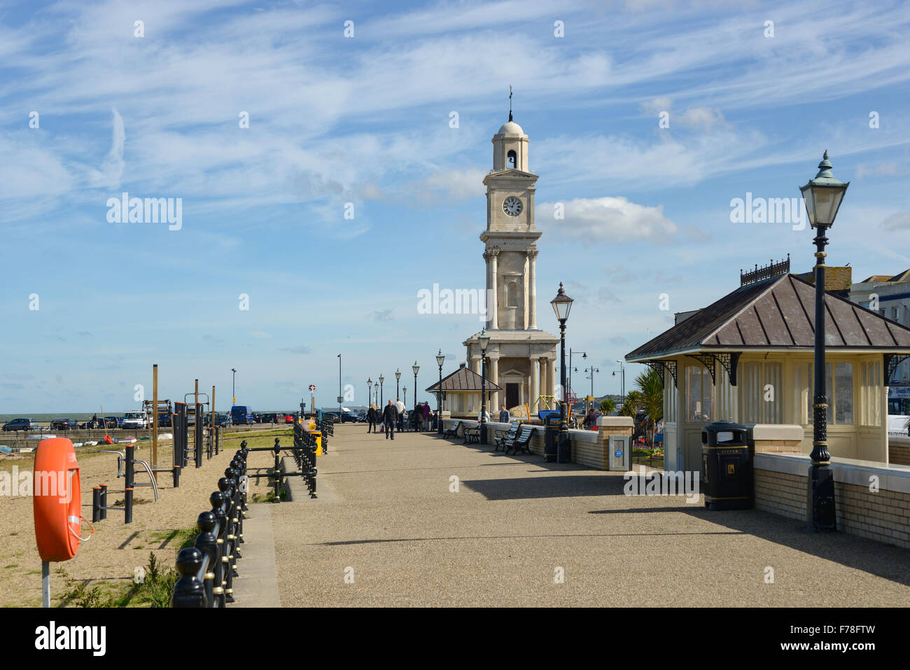 Beach promenade and Clock Tower, Herne Bay, Kent, England, United