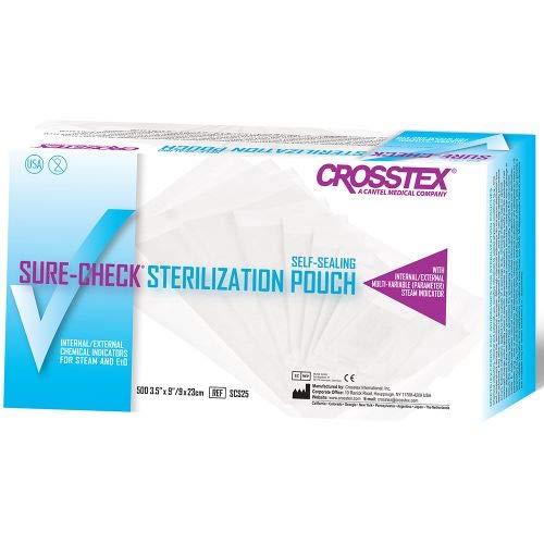 Crosstex 31/2" x 51/4" Sure Check Sterilization Pouches 200/Box Crosstex Autoclave Pouches the most basic example of an external indicator is steam indicator tape (autoclave tape). Provides breathability, a sterile barrier, and indication of processing without the need to heat seal. This type of class i process. Manufactured for use with dry heat processes up to 420°f. Crosstex Autoclave Pouches.