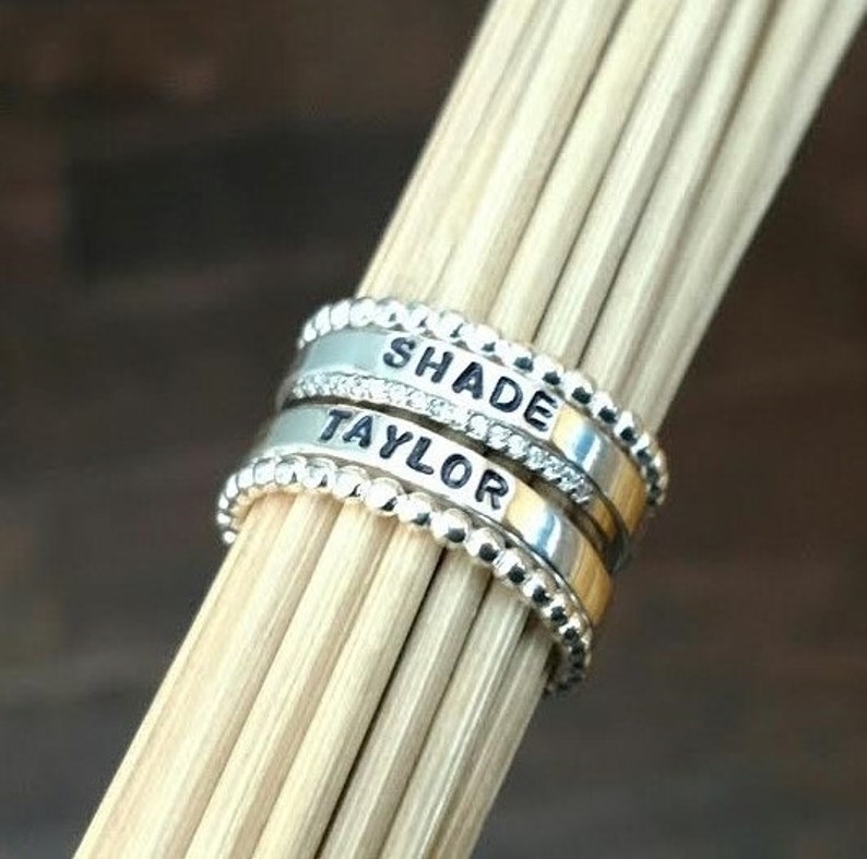 Personalized Ring Name Custom name, initial & engravable jewelry: We're a bunch of faithful english ring artists who are specialising in handcrafted custom and personalised rings, with a combined experience. Personalized jewelry handcrafted and hand stamped with names, dates, words or phrases that matter most to you. Mix and match with engraved names, initials or birthstones or get that memorable date custom made. Personalized Ring Name.
