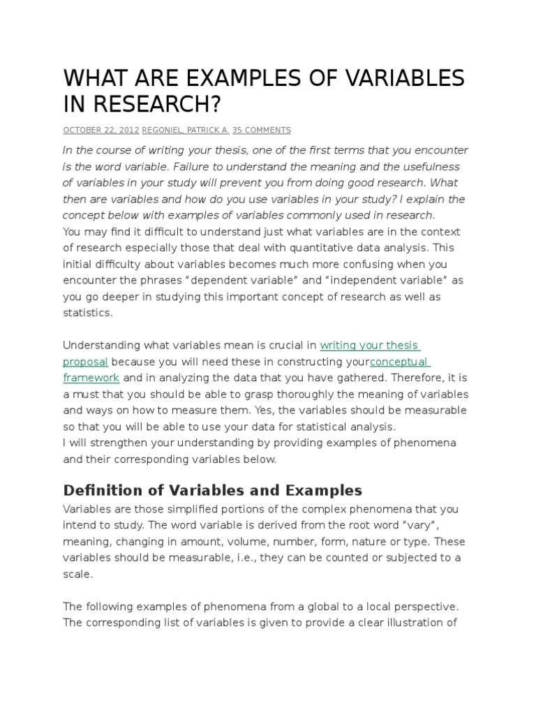 What Are Examples of Variables in Research PDF Validity (Statistics