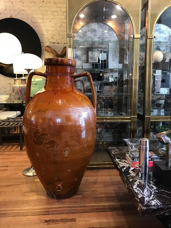 Glazed Terra Cotta Italian Amphora Form Olive Oil Vessel For Sale at