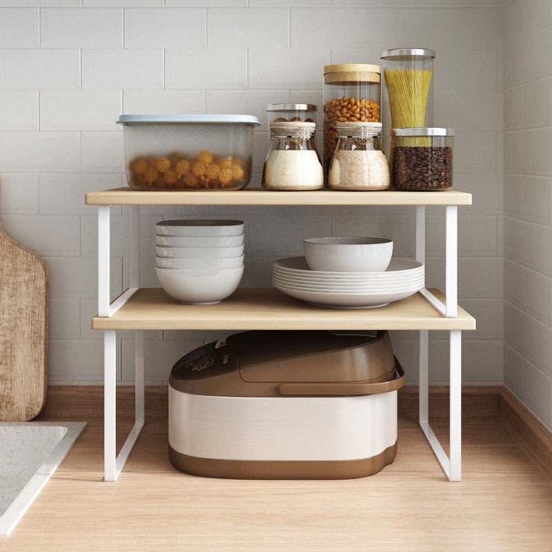 Ybing cabinet storage shelf organizers stackable expandable kitchen spice racks countertop shelves set of 2 wood and metal storage. Shop wayfair.co.uk for the best freestanding kitchen countertop shelves. Zofun 2 pcs expandable kitchen cupboard shelves, 20 x 15/20 cm tall kitchen counter shelf with 20 cm expandable range, carbon steel.