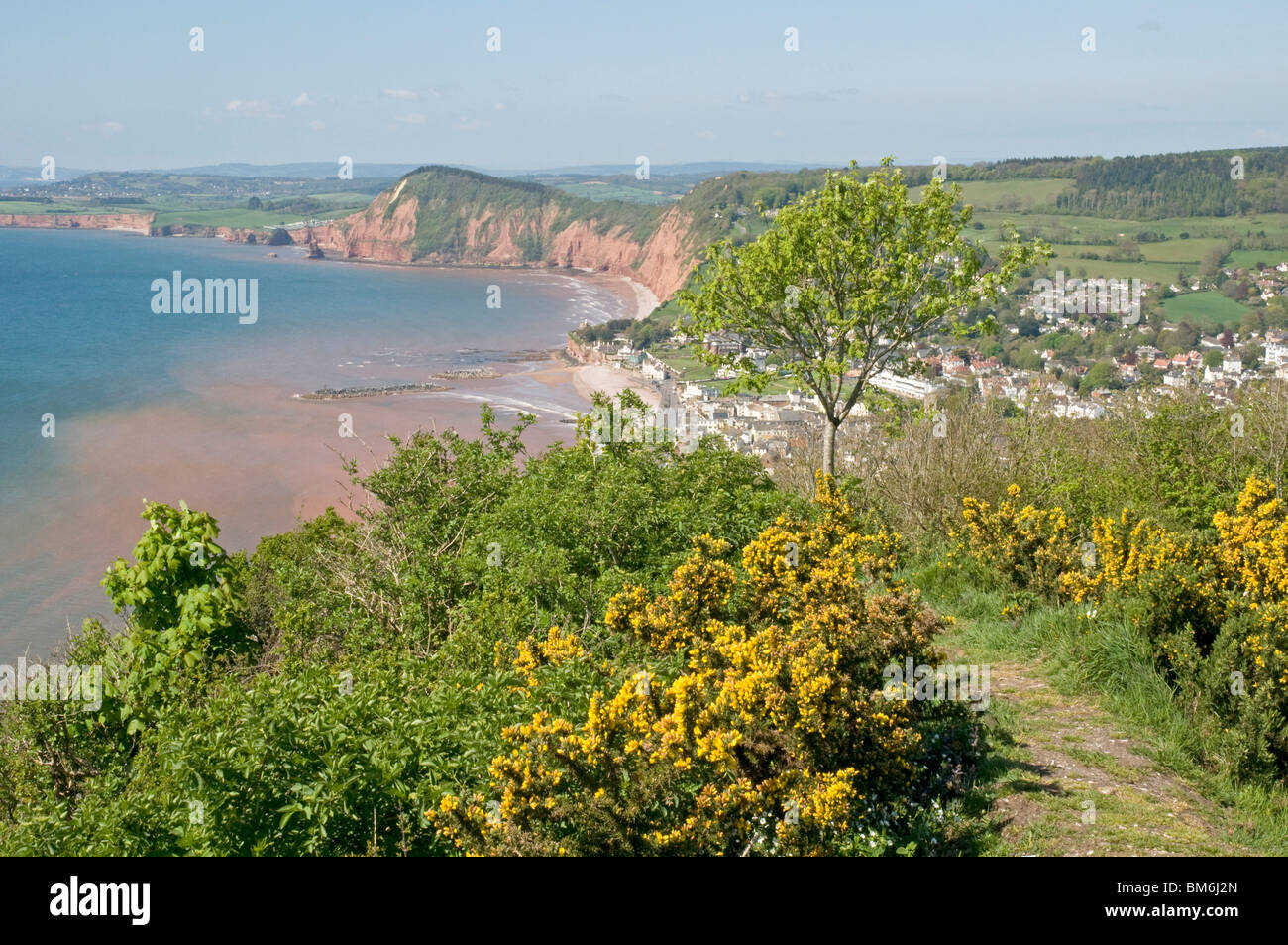 Looking west across Sidmouth, Devon, from Hill, with Peak Hill in the distance Stock