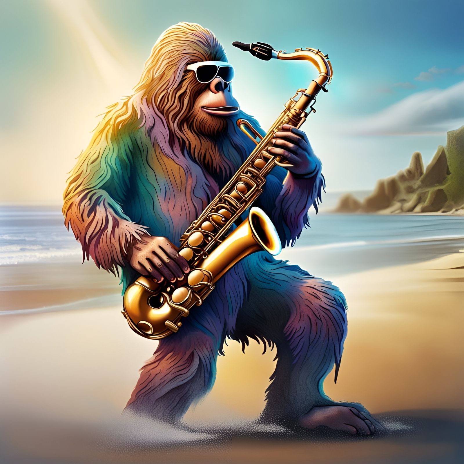 Sasquatch playing the Saxophone AI Generated Artwork NightCafe Creator