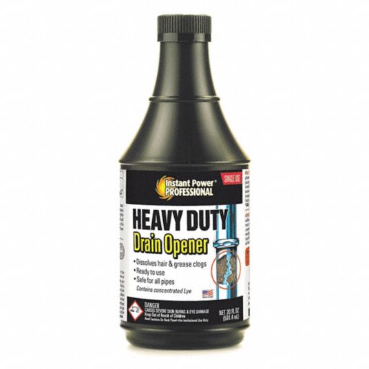 Heavy Duty Drain Opener Instant Power ProfessionalInstant Power Scotch Instant Power Drain Opener Our instant power hair & grease® drain opener is the solution for the most common drain stoppages. Pour 4 ounces into all your drains and let it sit. Powerful dual hydroxide formula dissolves hair and creates heat to melt grease. 15x more effective than legacy drain openers; This drain opener generates heat to melt and dissolve materials that clog up. Scotch Instant Power Drain Opener.