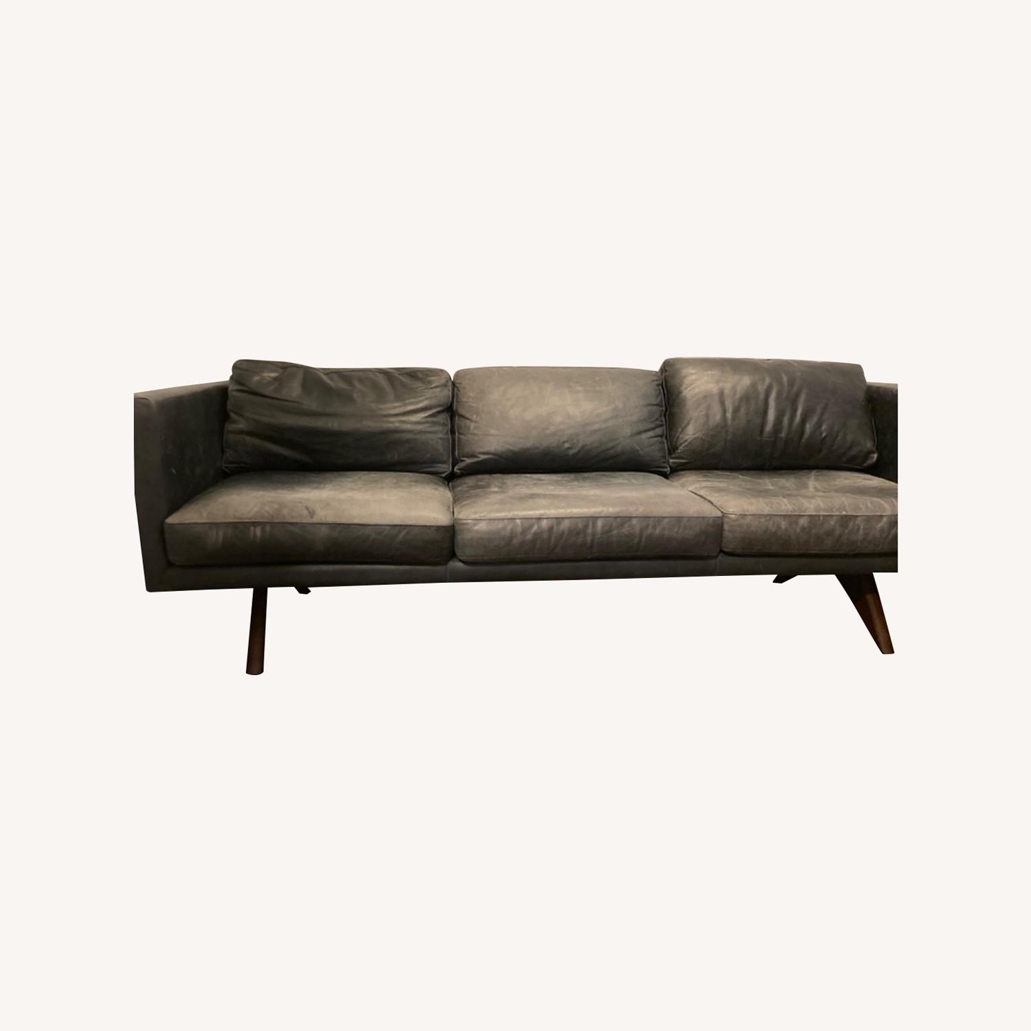 West Elm 80 Black Leather Sofa AptDeco